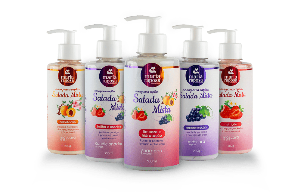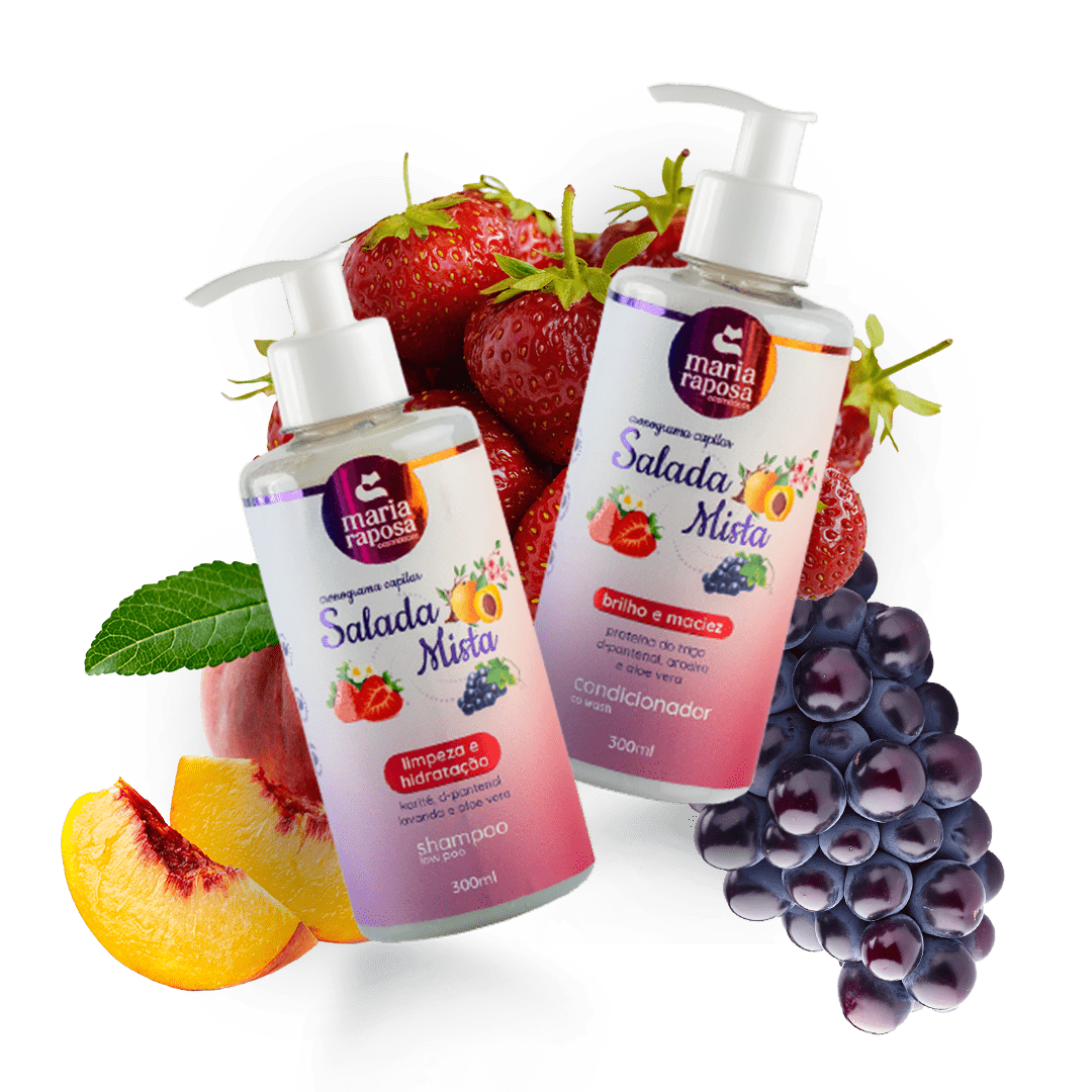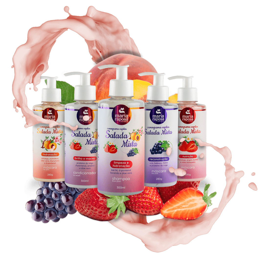 O CRONOGRAMA CAPILAR SALADA MISTA, foi cuidadosamente desenvolvido com ativos naturais, para proporcionar saúde ao couro cabeludo e às madeixas, auxiliando no crescimento, desembarace e maleabilidade, dos fios. Chega de cabelos quebradiços, opacos e sem vida. A linha SALADA MISTA é um tratamento capilar para quem é exigente com os cabelos. Se joga, Raposete!
